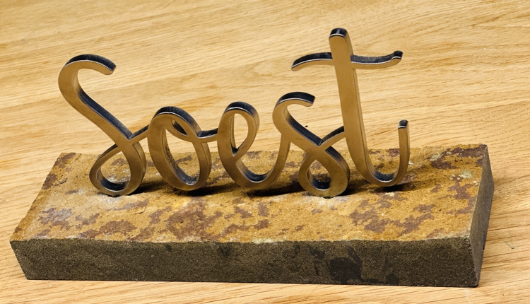 Dieser sehr schöne Schriftzug zu deinem Lieblingsort “Soest” ist aus 5mm Edelstahl gefertigt und ist auf einer Grünsandsteinplatte montiert !