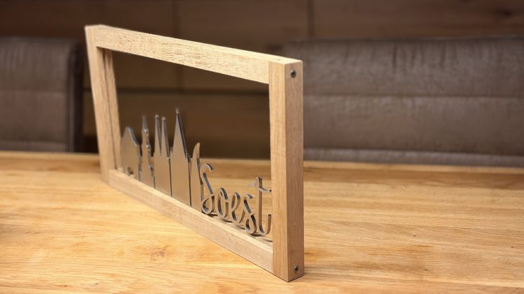 Unsere Soester Skyline besteht aus 5 mm starkem Edelstahl, dessen leicht verrundete Kanten eine besondere Wertigkeit und angenehme Haptik ausstrahlt. In Kombination mit dem massiven Rahmen aus Eiche entsteht ein hochwertiges Dekostück, das die markanten Silhouetten der Altstadt zeitlos in Szene setzt.